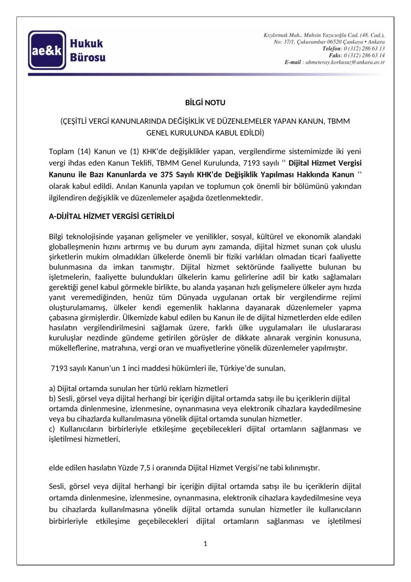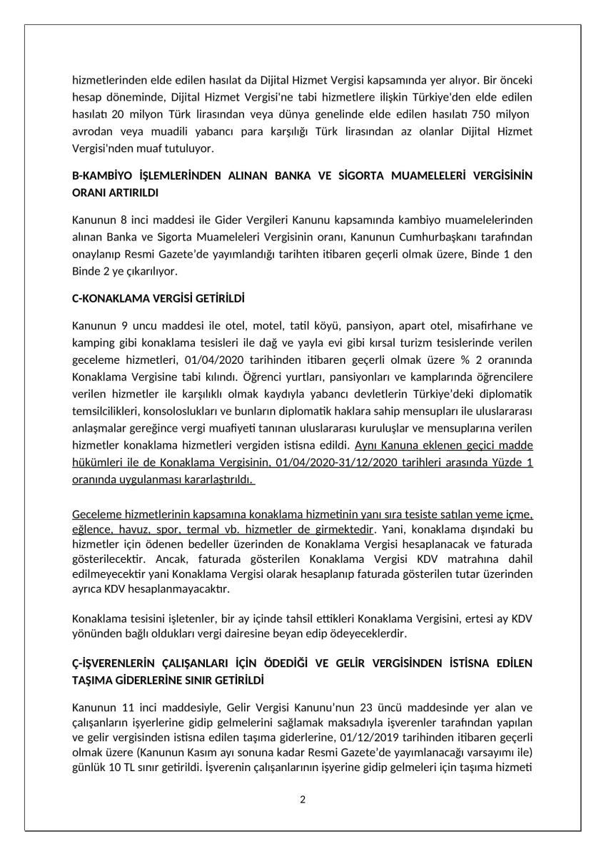 Yeni Vergi Düzenlemeleri Hakkında