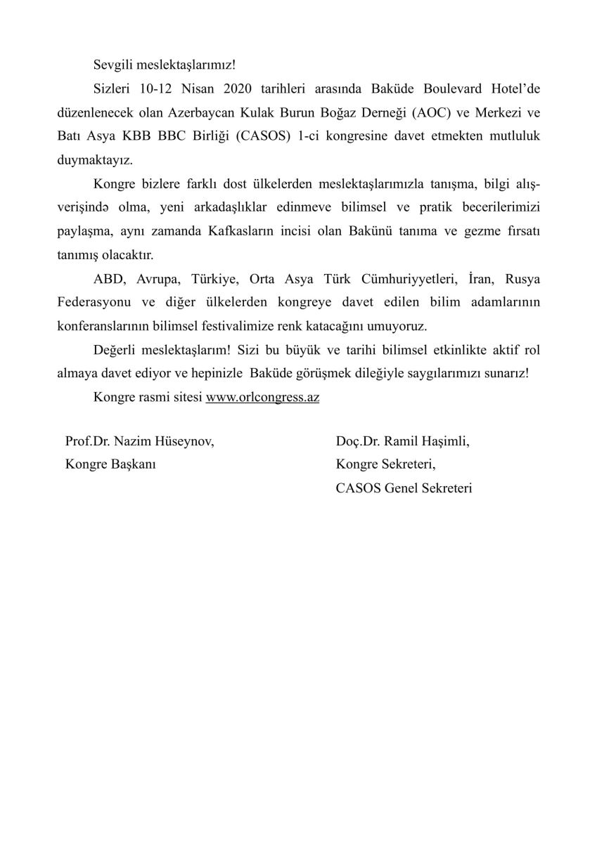 1.Merkezi ve Batı Asya KBB BBC Birliği Kongresi