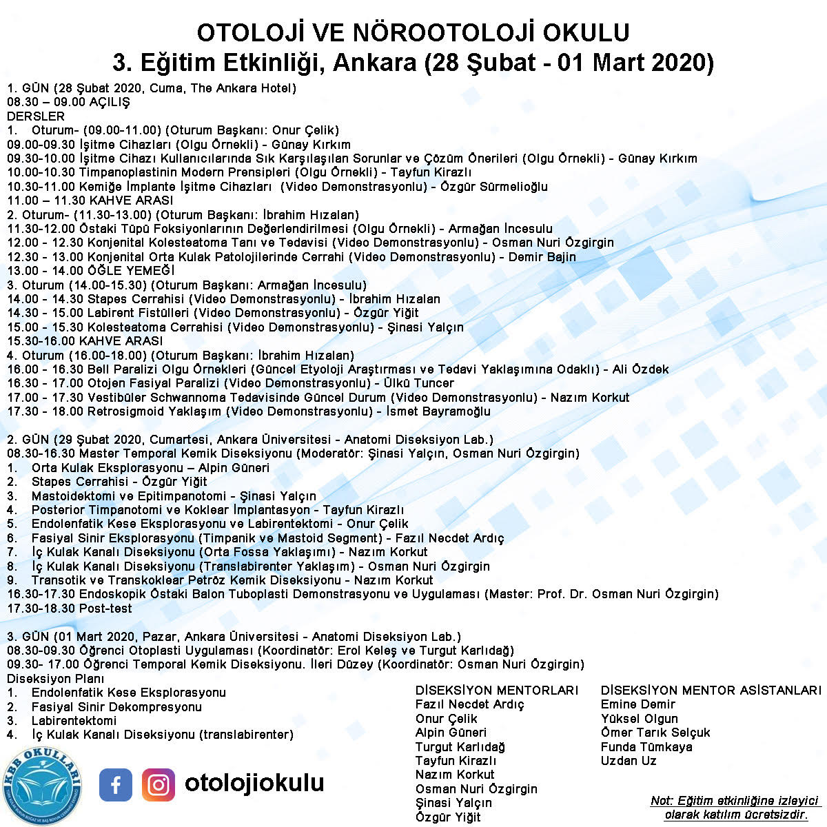 Otoloji ve Nörootoloji Okulu Şubat Ayı Eğitim Programı Açıklandı