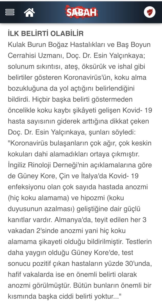 Koku Kaybı ve Koronavirüs