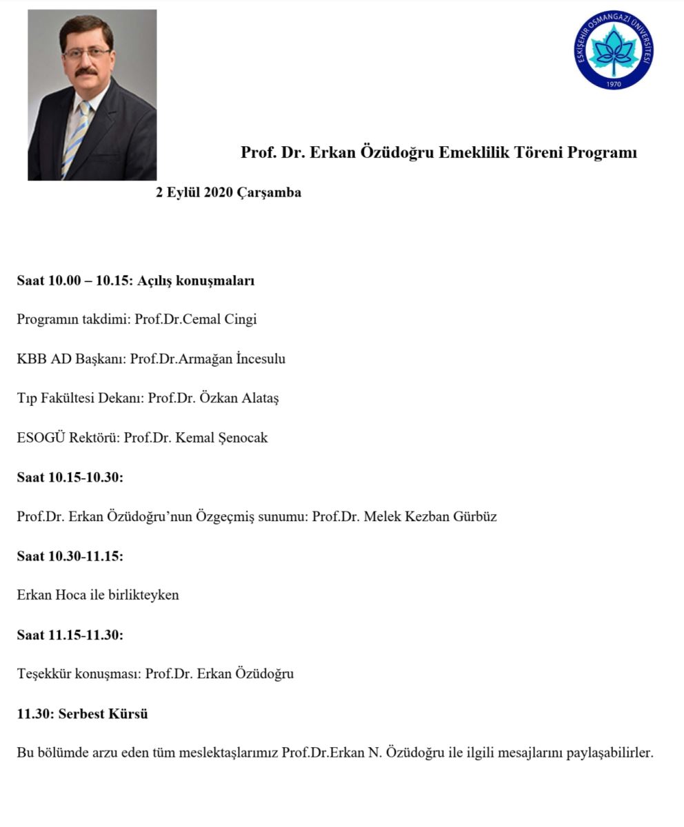 Eskişehir Osmangazi Üniversitesi Tıp Fakültesi KBB Anabilim Dalı öğretim üyesi Sn.Prof.Dr.Erkan Niyazi ÖZÜDOĞRU 18 Ağustos 2020 tarihinde emekli olmuştur.