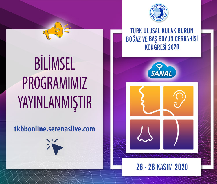 Türk Ulusal Kulak Burun Boğaz ve Baş Boyun Cerrahisi Sanal Kongresi Bilimsel Programımız Yayınlanmıştır