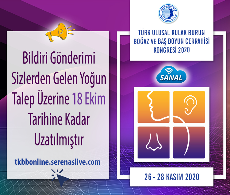 Türk Ulusal KBB ve BBC Kongresi Bildiri Gönderimimiz 18 Ekim Tarihine Kadar Uzatılmıştır