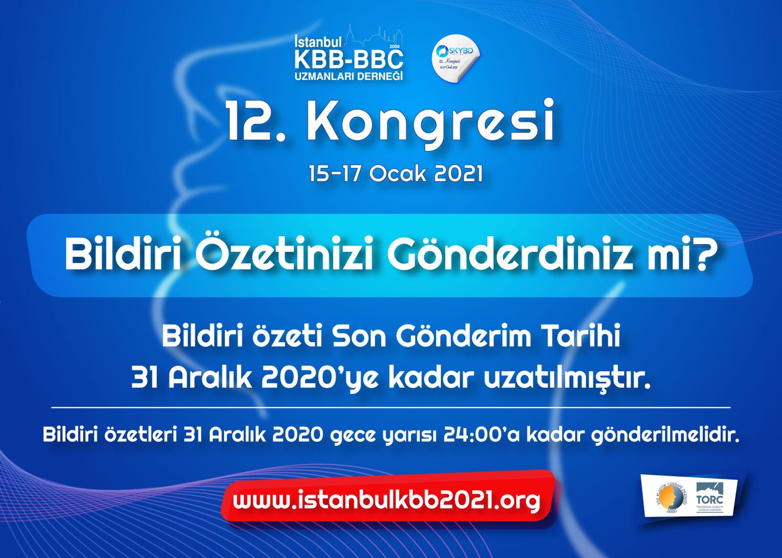 İstanbul KBB – BBC Uzmanları Derneği 12. Kongresi Bildiri Özeti Gönderimi Son Tarihi Uzatıldı