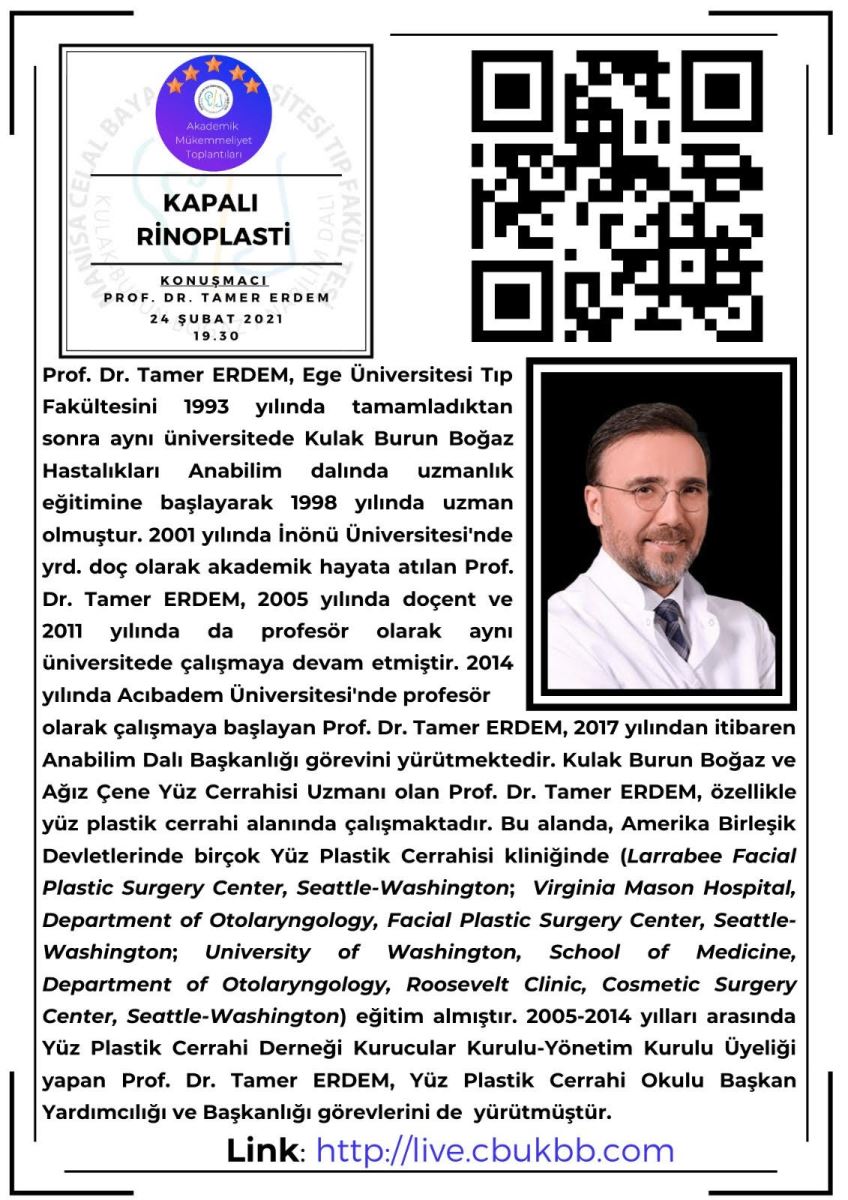Manisa Celal Bayar Üniversitesi Kulak Burun Boğaz Hastalıkları Anabilim Dalı'nın düzenlediği Akademik Mükemmeliyet Toplantıları'nda siz değerli meslektaşlarımızı da aramızda görmekten onur duyarız.