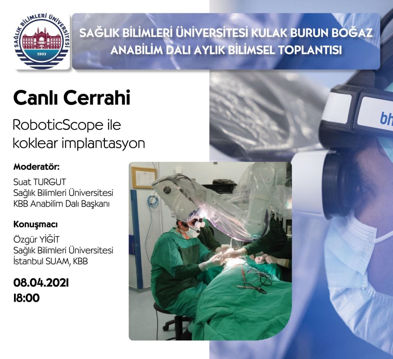 Sağlık Bilimleri Üniversitesi Kulak Burun Boğaz Ana Bilim Dalı Aylık Bilimsel Toplantısı “Canlı Cerrahi Robotic Scope ile Koklear İmplantasyon”