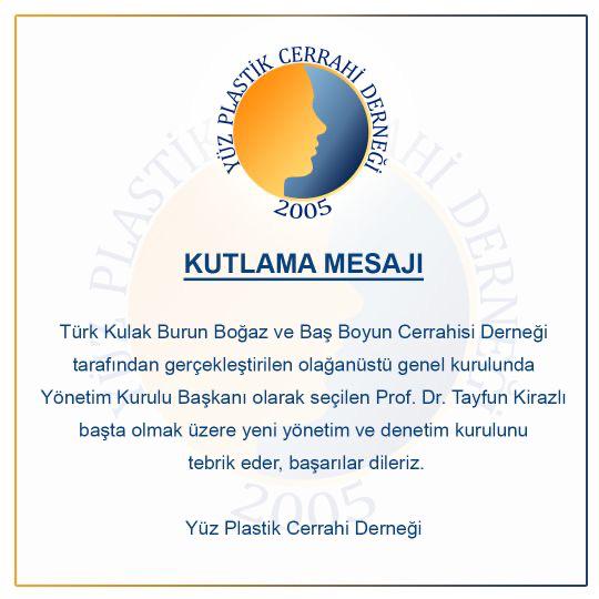 Yüz Plastik Cerrahi Derneği’nin Tebrik Mesajı