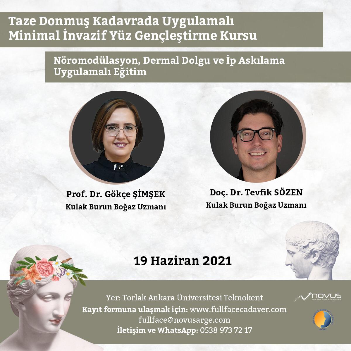 T.C. Sağlık Bakanlığı’nın COVİD-19 hastalığı mücadelesi kapsamında yayınlamış olduğu kurallar çerçevesinde; 19 Haziran 2021 tarihinde TORLAK (Türk Oto Rino Laringoloji Araştırma Kurumu)’ta, Prof. Dr. Gökçe ŞİMŞEK ve Doç. Dr. Tevfik SÖZEN tarafından sosyal mesafeli olarak gerçekleştirilecek “Taze Donmuş Kadavrada Uygulamalı Minimal İnvazif Yüz Gençleştirme Kursu: Nöromodulasyon, Dermal Dolgu Ve İp Askılama Uygulamalı Eğitimi”ne siz değerli hekimlerimizi davet etmek isteriz. Katılım KONTENJAN ile sınırlıdır.