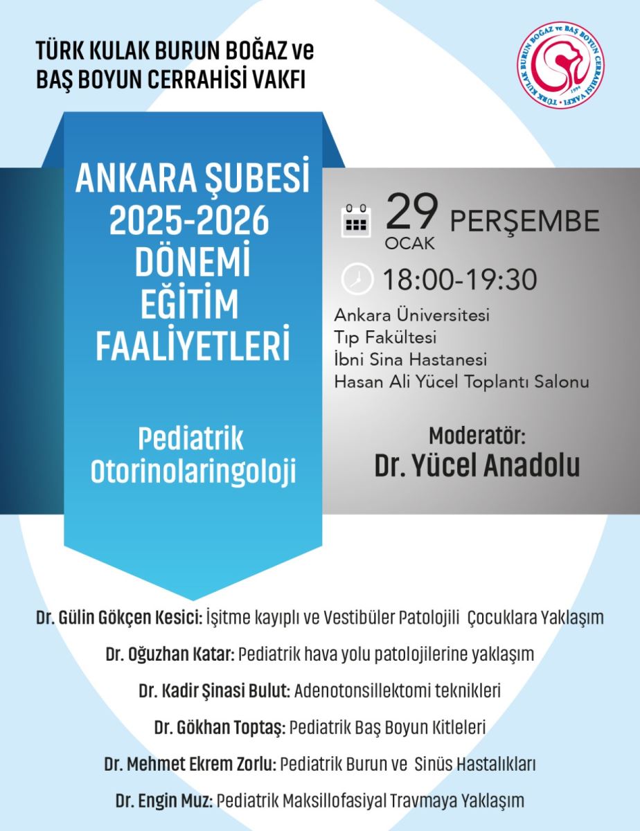 Türk Kulak Burun Boğaz ve Baş Boyun Cerrahisi Vakfı Ankara Şubesi "Pediatrik Otorinolaringoloji" : 29 Ocak 2026